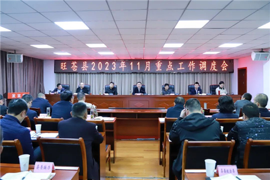 11月13日,县委书记唐文辉主持召开旺苍县2023年11月重点工作调度会暨重点产业专班调度会。他强调,要深入贯彻落实党的二十大精神和习近平总书记来川来广视察重要指示精神,认真落实党中央和省委、市委决策部署,进一步坚定信心、全力冲刺,确保全面完成全年目标任务。县人大常委会主任赵俊科,县委副书记李放出席会议。