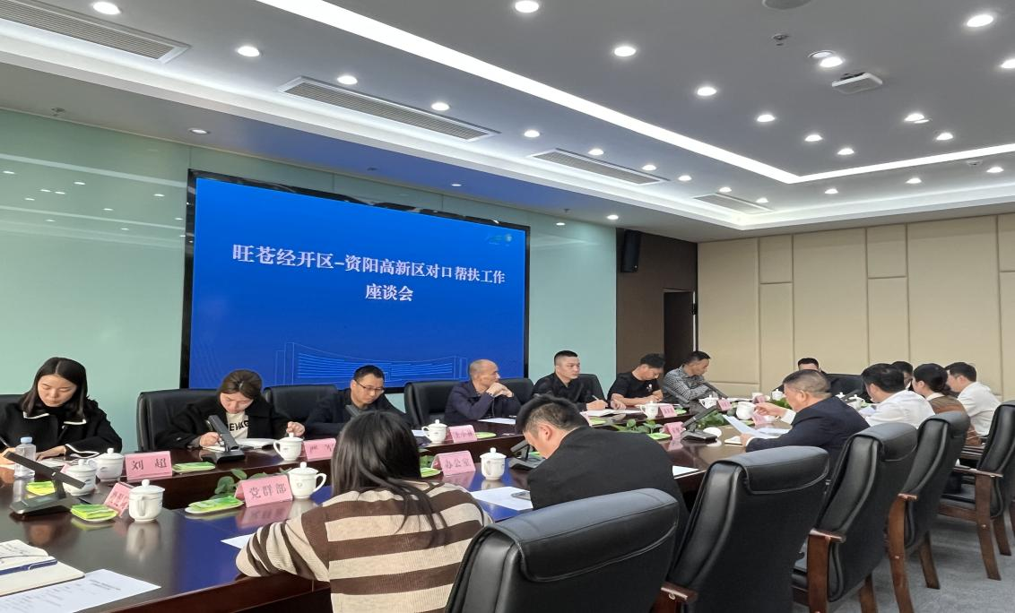 11月9日,旺苍经开区党工委副书记、管委会主任杜昕东率队到资阳高新区对接省内对口帮扶工作,资阳高新区党工委委员、机关党委书记宋继桃陪同参观考察并座谈交流。