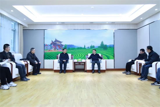 12月19日,县委书记唐文辉会见新疆能源(集团)有限责任公司孙波、孙明发等一行,双方就加快推进西南煤炭调拨储运中心项目等有关事宜进行座谈交流。县人大常委会主任赵俊科参加会见。
