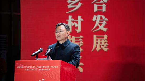 唐文辉在致辞中向来宾和演职人员表示热烈的欢迎,向关心支持旺苍发展的社会各界朋友表示衷心的感谢。他指出,旺苍文化底蕴深厚,是全国首批革命文物保护利用片区和省级历史文化名城。近年来,旺苍县深入学习贯彻习近平文化思想,全面落实全国和全省、全市宣传思想文化工作会议精神,深入推进文化惠民工程,木门会议旧址获评“全国重点文物保护单位”,旺苍端公戏列入国家级非遗名录,举办全国摄影作品展、“书香红城”、“文艺进万家”等系列文艺文化活动,歌曲《苔花谣》、纪录片《山高水长》荣获全省“五个一工程”奖,戏剧《城里的月光》荣获全省“群星奖”,歌曲《我是旺苍人》名列全省“一县一歌”第二名,文化事业得到了蓬勃发展。我县将以本次活动为契机,进一步加强文化阵地建设,办好文化惠民活动,建强文艺人才队伍,积极创建省级文明城市,加快建设红色文化强县。诚邀各界朋友常来旺苍,走红色之路、游多彩绿谷、品汉唐贡茗、探米仓古道、观恐龙化石。