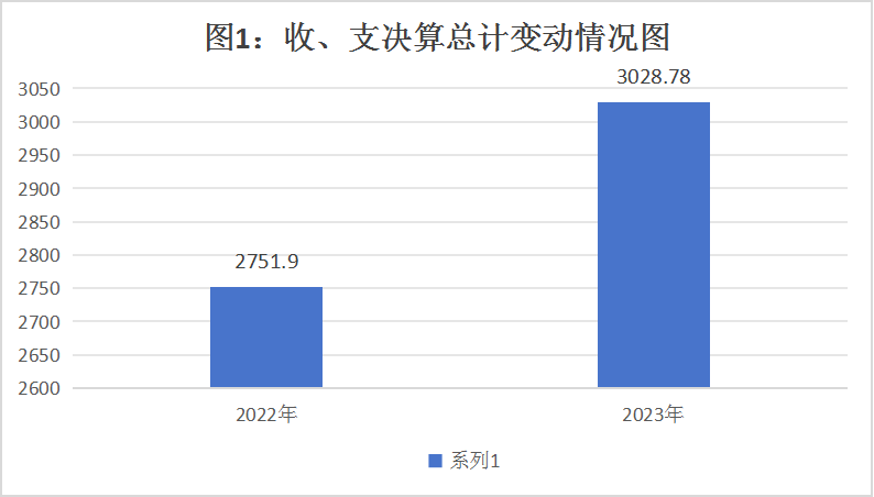 2023年度收、支总计均为3028.78万元。与2022年度相比,收、支总计均增加276.88万元,增长10.06%。主要变动原因一是2023年去世退休职工3人,丧葬抚恤费增加;二是补发了退休人员一次性补贴,三是2023年一次性项目较上年增多。