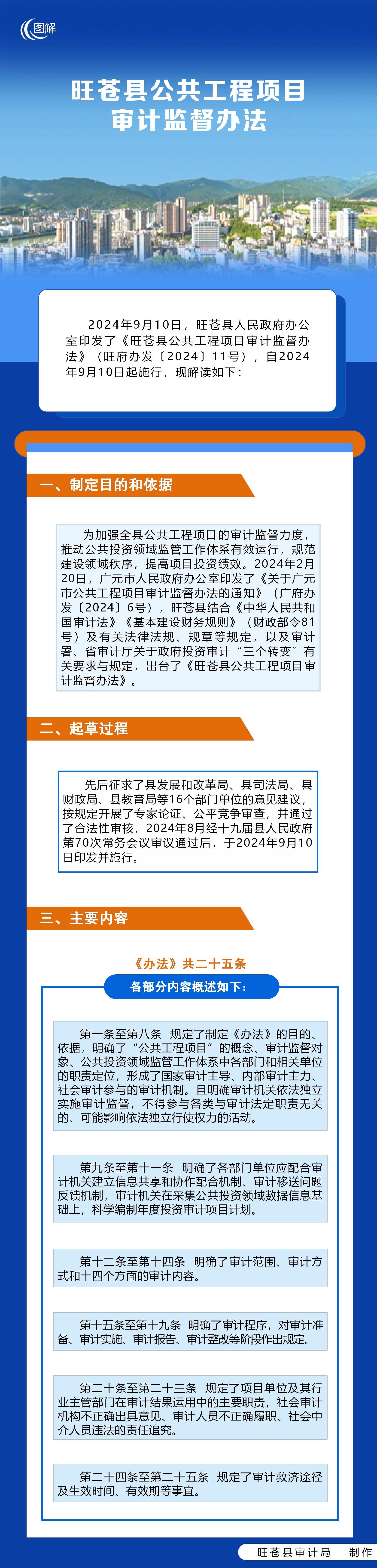 当前位置:首页 政策解读 > 图解:《旺苍县公共工程项目审计监督办法》