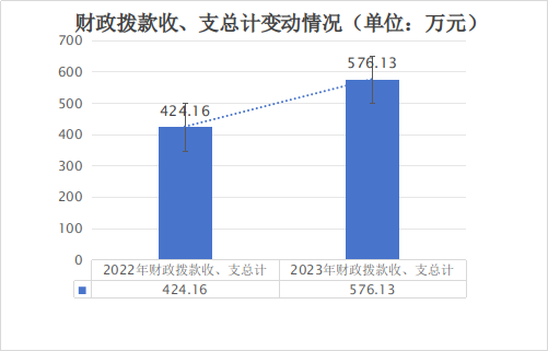 2023年度财政拨款收、支总计均为576.13万元。与2022年度相比,财政拨款收、支总计各增加151.97万元,增长35.8%。主要变动原因是项目经费增加。
