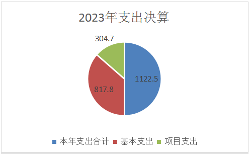 2023年本年支出合计1122.5万元,其中:基本支出817.8万元,占73%;项目支出304.7万元,占27%。
