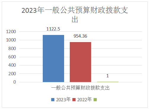 2023年一般公共预算财政拨款支出1122.5万元,占本年支出合计的100%。与2022年相比,一般公共预算财政拨款增加168.14万元,增长18%。主要变动原因是人员变动、调资、抚恤金等基本费用支出增加。