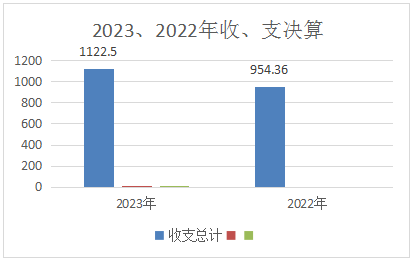 2023年度收、支总计均为1122.5万元。(其中:2023年收入总计含年度执行中追加267.5万元)与2022年相比,收、支总计各增加168.14万元,增长18%。主要变动原因是人员变动、调资、抚恤金等基本费用支出增加。