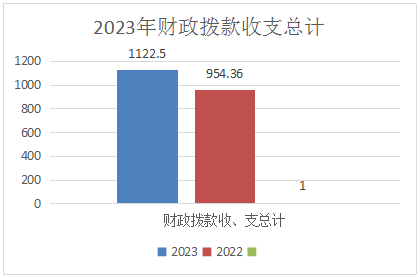 2023年财政拨款收、支总计均为1122.5万元。与2022年相比,财政拨款收、支总计各增加168.14万元,增长18%。主要变动原因是人员变动、调资、抚恤金等基本费用支出增加。