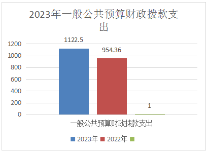 2023年一般公共预算财政拨款支出1122.5万元,占本年支出合计的100%。与2022年相比,一般公共预算财政拨款增加168.14万元,增长18%。主要变动原因是人员变动、调资、抚恤金等基本费用支出增加。