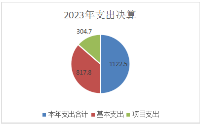 2023年本年支出合计1122.5万元,其中:基本支出817.8万元,占73%;项目支出304.7万元,占27%。