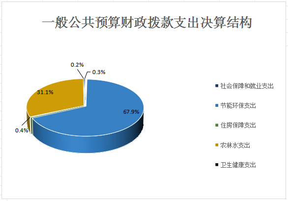 2023年度一般公共预算财政拨款支出1192.73万元,主要用于以下方面: 社会保障和就业支出3.82万元,占0.3%;卫生健康支出2.98万元,占0.2%;节能环保支出810.28万元,占68%;农林水支出371.1万元,占31.1%;住房保障支出4.55万元,占0.4%。