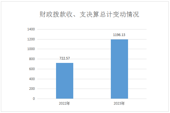 2023年度财政拨款收、支总计均为1196.13万元。与2022年度722.57万元相比,财政拨款收、支总计各增加473.56万元,增长65.54%。主要变动原因是增加鼓道源资产购置支出。