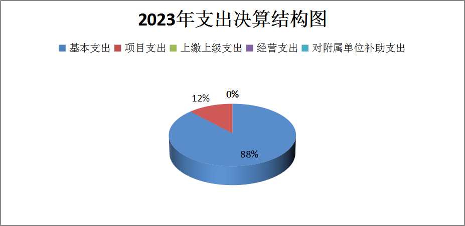 2023年度本年支出合计2002.23万元,其中:基本支出1760.28万元,占87.9%;项目支出241.95万元,占12.1%;上缴上级支出0万元,占0%;经营支出0万元,占0%;对附属单位补助支出0万元,占0%。