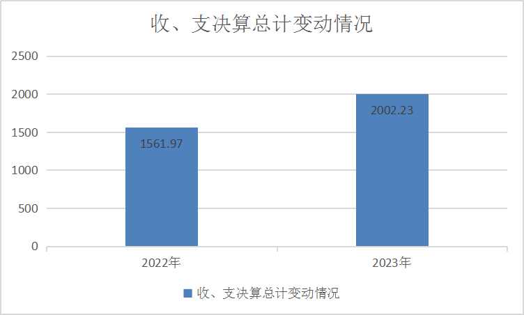 2023年度收、支总计均为2002.23万元。与2022年度相比,收、支总计各增加440.26万元,增长28.2%。主要变动原因是人员经费和项目经费增加。