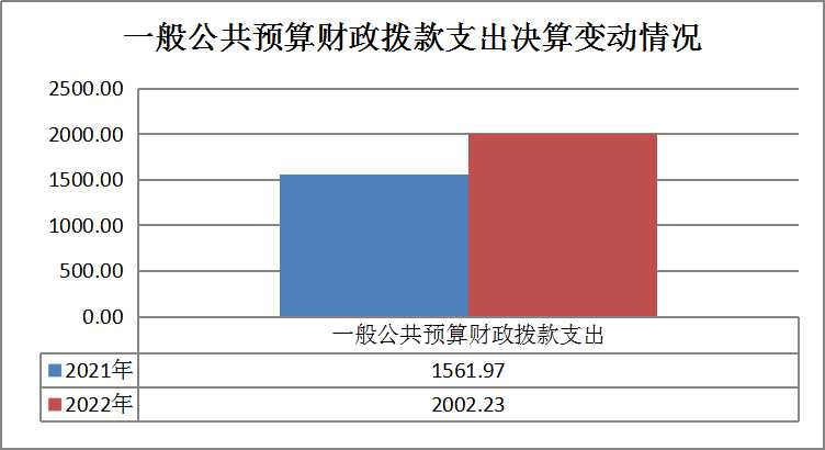 2023年度一般公共预算财政拨款支出2002.23万元,占本年支出合计的100%。与2022年度相比,一般公共预算财政拨款支出增加440.26万元,增长28.2%。主要变动原因是人员经费和项目经费增加。