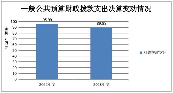 2023年度一般公共预算财政拨款支出89.85万元,占本年支出合计的100%。与2022年度相比,一般公共预算财政拨款支出减少6.14万元,下降6.4%。主要变动原因是2023年度项目支出减少。