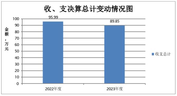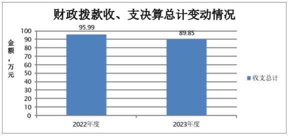 2023年度收、支总计均为89.85万元。与2022年度相比,收、支总计各减少6.14万元,下降6.4%。主要变动原因是2023年度项目支出减少。