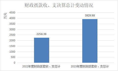 2023年度财政拨款收、支总计均为3929.98万元。与2022年度相比,财政拨款收、支总计各增加1671.59万元,增长74%。主要变动原因是离退休干部慰问金纳入预算及解决历史遗留问题项目资金增加。