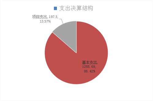 2023年度本年支出合计1452.99万元,其中:基本支出1255.69万元,占86.42%;项目支出197.3万元,占13.57%;上缴上级支出0万元,占0%;经营支出0万元,占0%;对附属单位补助支出0万元,占0%。