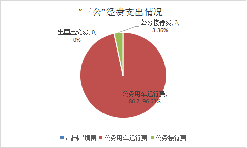 2023年度“三公”经费财政拨款支出决算中,因公出国(境)费支出决算0万元,占0%;公务用车购置及运行维护费支出决算86.2万元,占96.63%;公务接待费支出决算3万元,占3.36%。具体情况如下: