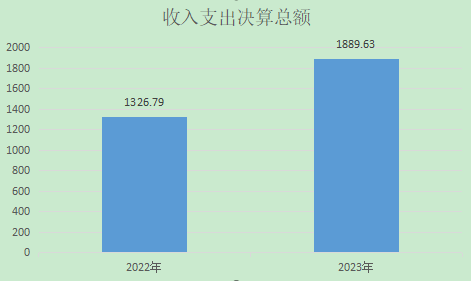 2023年度收、支总计均为1889.63万元。与2022年度相比,收、支总计各增加562.84万元,增长42.42%。主要变动原因是上年度未支付完成的资金以存量资金作为本年度收入。
