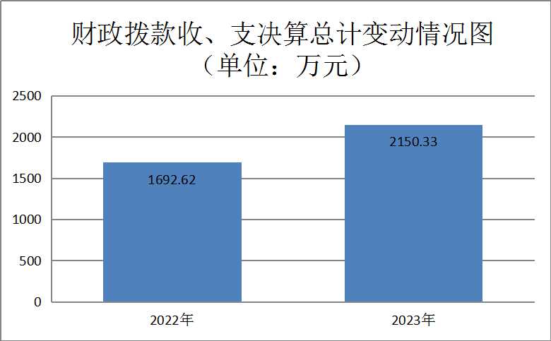 2023年度收、支总计均为2150.33万元。与2022年度相比,收、支总计各增加457.71万元,增长27.04%。主要变动原因是增加2023年调动、调资等人员经费,调整大要案查处专项经费、乡镇和部门纪检津贴、丧葬抚恤金等项目经费。