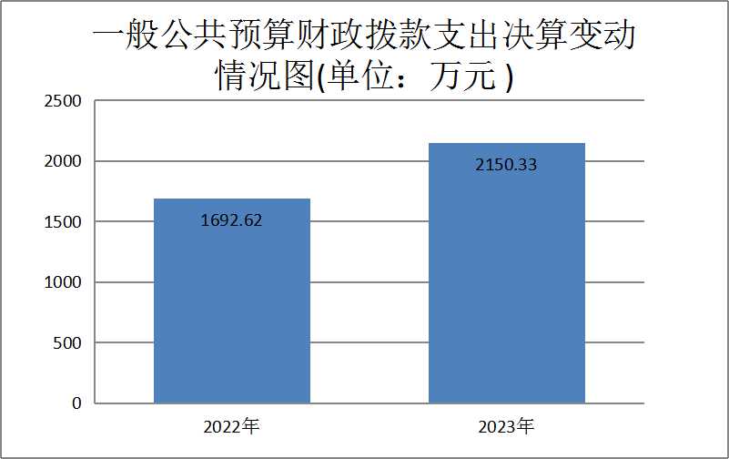 2023年度一般公共预算财政拨款支出2150.33万元,占本年支出合计的100%。与2022年度相比,一般公共预算财政拨款支出增加457.71万元,增长27.04%。主要变动原因是增加2023年调动、调资等人员经费,调整大要案查处专项经费、乡镇和部门纪检津贴、丧葬抚恤金等项目经费。
