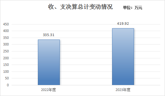 2023年度收、支总计419.92万元。与2022年相比,收、支总计各增加84.61万元,增长25.23%。主要变动原因是人员经费、公业务费用增加;信息化建设要求,增加相关费用支出;“市带县”巡察等增加巡察工作经费。