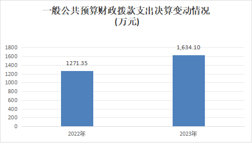 2023年度一般公共预算财政拨款支出1634.10万元,占本年支出合计的100%。与2022年度相比,一般公共预算财政拨款支出增加362.75万元万元,增长28.53%。主要变动原因是离退休人员及对村民委员会和村党支部补助等经费增加。