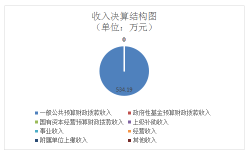2023年度本年收入合计534.19万元,其中:一般公共预算财政拨款收入534.19万元,占100%;政府性基金预算财政拨款收入0万元,占0%;国有资本经营预算财政拨款收入0万元,占0%;上级补助收入0万元,占0%;事业收入0万元,占0%;经营收入0万元,占0%;附属单位上缴收入0万元,占0%;其他收入0万元,占0%。
