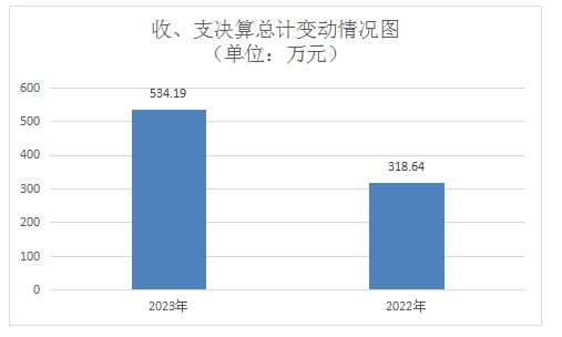 2023年度收、支总计均为534.19万元。与2022年度相比,收、支总计各增加215.55万元,增长67.64%。主要变动原因是死亡抚恤金项目增加44万元,废弃农膜回收补贴项目较上年增加50万元,商业服务业等支出增加121.55万元。