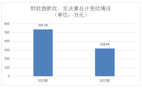 2023年度财政拨款收、支总计均为534.19万元。与2022年度相比,财政拨款收、支总计各增加215.55万元,增长67.64%。主要变动原因是死亡抚恤金项目增加44万元,废弃农膜回收补贴项目较上年增加50万元,商业服务业等支出增加121.55万元。
