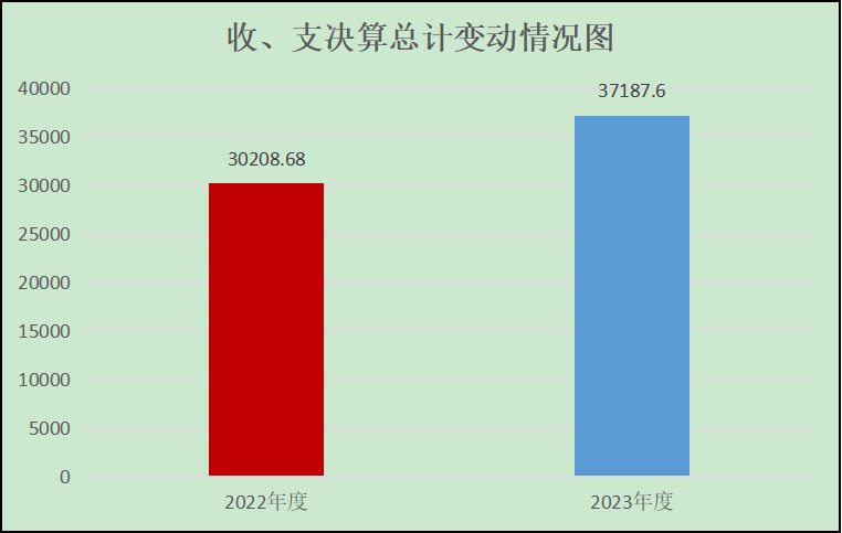 2023年度收、支总计均为37187.6万元。与2022年度相比,收、支总计各增加6978.92万元,增长23.1%。主要变动原因是本年度项目收支增加。