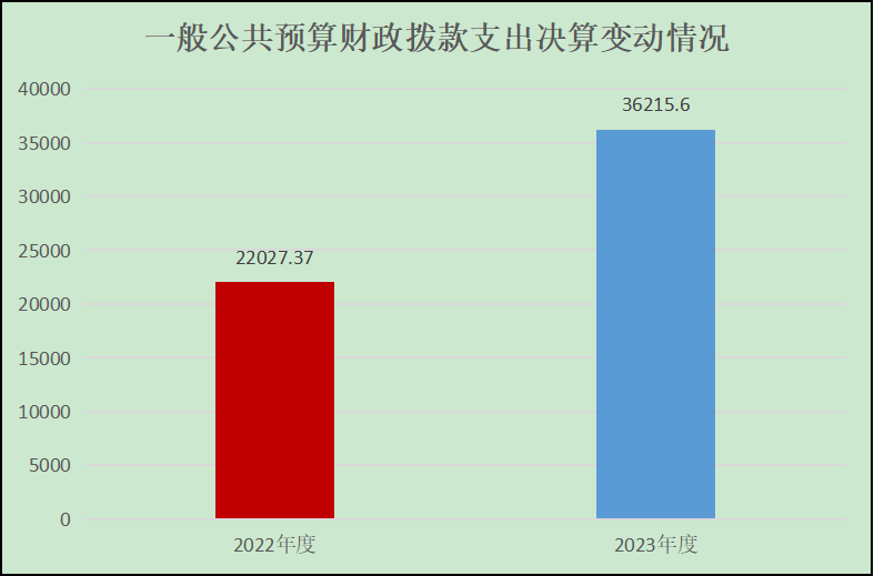 2023年度一般公共预算财政拨款支出36215.6万元,占本年支出合计的97.39%。与2022年度相比,一般公共预算财政拨款支出增加14188.23万元,增长64.41%。主要变动原因是本年度项目支出增加。