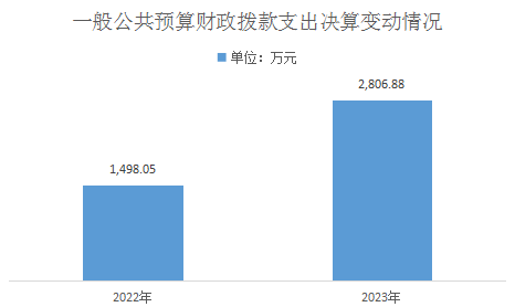 2023年度一般公共预算财政拨款支出2806.88万元,占本年支出合计的100%。与2022年度相比,一般公共预算财政拨款支出增加1308.83万元,增长87%。主要变动原因是2023年初预算较上年新增人员5人,人员清算增加;2022年部分绩效、工资在23年支出。2022年第一批省级城乡建设发展专项资金(城乡垃圾处理设施建设)预算1758万元在本年支出691.5万元,2021年第二批省级城乡建设发展专项资金685万元在本年支出119.6万元。凤凰梁临时市场搭建的运行经费20万元和省级卫生县城创建复审工作经费30万均在本年支出。