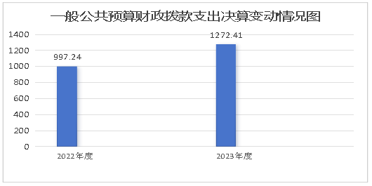2023年度一般公共预算财政拨款支出1272.41万元,占本年支出合计的100%。与2022年度相比,一般公共预算财政拨款支出增加275.17万元,增长27.6%。主要变动原因:一是机关人员增加;二是机关运行经费增加。