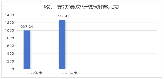 2023年度收、支总计均为1272.41万元。与2022年度相比,收、支总计各增加275.17万元,增长27.6%。主要变动原因:一是机关人员增加;二是机关运行经费增加。