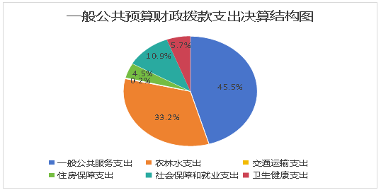 2023年度一般公共预算财政拨款支出1272.41万元,主要用于以下方面:一般公共服务支出579.47万元,占45.5%;农林水支出421.38万元,占33.2%;社会保障和就业支出139.32万元,占10.9%;卫生健康支出72.82万元,占5.7%;住房保障支出57.63万元,占4.5%;交通运输支出1.8万元,占0.2%。