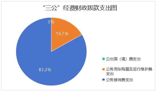 2023年度“三公”经费财政拨款支出决算中,因公出国(境)费支出决算0万元,占0%;公务用车购置及运行维护费支出决算3万元,占16.7%;公务接待费支出决算15万元,占83.3%。具体情况如下: