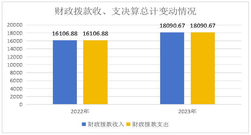 2023年度财政拨款收、支总计均为18090.67万元。与2022年度相比,财政拨款收、支总计各增加1983.79万元,增长12.32%。主要变动原因是困难群众救助标准增加及新增建设项目。