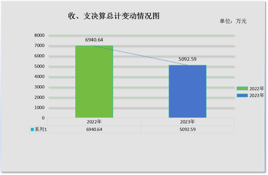2023年度收、支总计均为5092.59万元。与2022年度相比,收、支总计各增减少1848.05万元,下降26.6%。主要变动原因是专项资金减少。