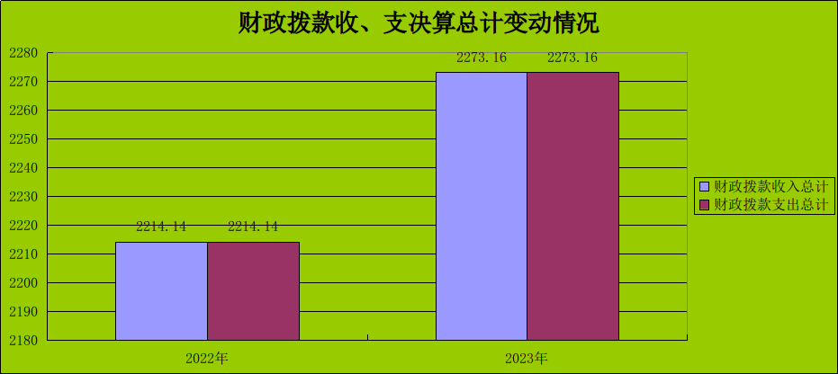 2023年度财政拨款收、支总计均为2273.16万元。与2022年相比,财政拨款收入总计增加59.02万元,增长2.67%。主要变动原因是单位人员经费增加,财政拨款收入增加。与2022年相比,财政拨款支出总计增加59.02万元,增长2.67%。主要变动原因是单位人员经费增加,财政拨款支出增加。