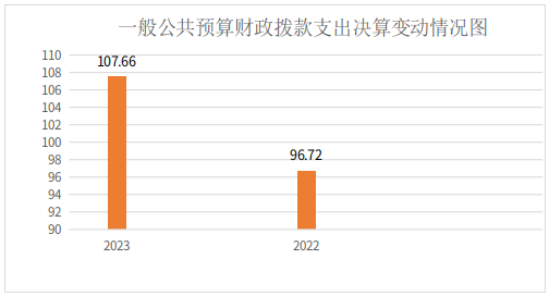 2023年度一般公共预算财政拨款支出107.66万元,占本年支出合计的100%。与2022年度相比,一般公共预算财政拨款支出增加10.93万元,增长11.3%。主要变动原因是人员经费支出增加。