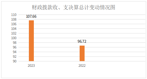 2023年度财政拨款收、支总计均为107.66万元。与2022年度相比,财政拨款收、支总计各增加10.93万元,增长11.3%。主要变动原因是人员经费支出增加。