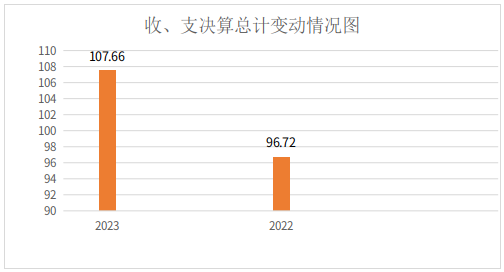 2023年度收、支总计均为107.66万元。与2022年度相比,收、支总计各增加10.93万元,增长11.3%。主要变动原因是人员经费支出增加。