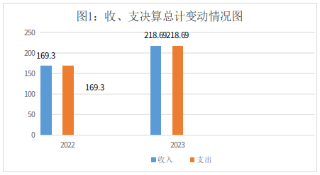 2023年度收、支总计均为218.69万元。与2022年度相比,收、支总计各增加49.39万元,增长29.17%。主要变动原因是项目经费和人员经费增加。