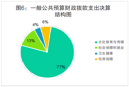 2023年度一般公共预算财政拨款支出218.69万元,主要用于以下方面:文化旅游体育与传媒支出168.39万元,占77%;社会保障和就业支出27.84,占12.73%;卫生健康支出8.61万元,占3.94%;住房保障支出13.85万元,占6.33%。