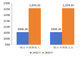 2023年度一般公共预算支出决算数为1259.33,完成预算100%。其中: