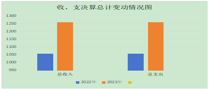 2023年度收、支总计均为1259.33万元。与2022年度相比,收、支总计各增加210.07万元,增长19.85%。主要变动原因是人员增加,全省保险基数上调,各类保险费用增加。