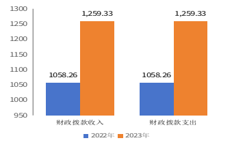2023年度收、支总计均为1259.33万元。与2022年度相比,收、支总计各增加210.07万元,增长19.85%。主要变动原因是人员增加,全省保险基数上调,各类保险费用增加。