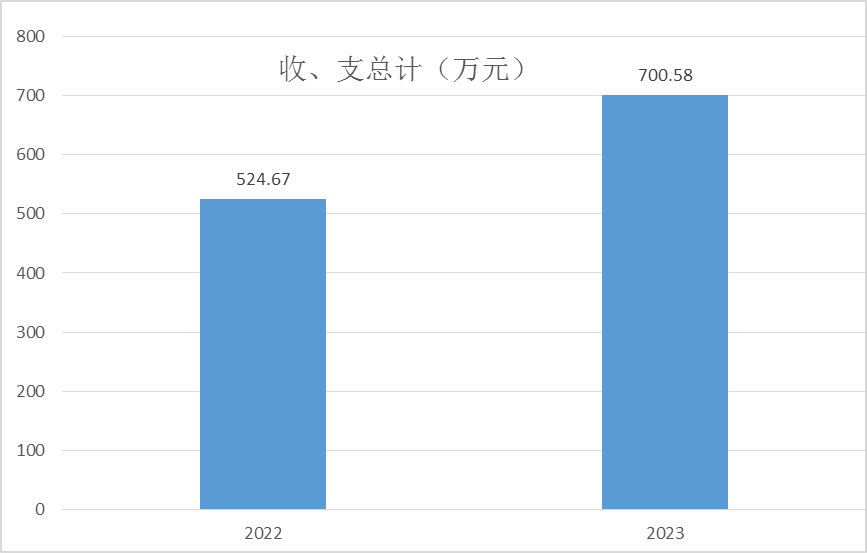 2023年度收、支总计均为700.58万元。与2022年度相比,收、支总计各增加175.91万元,增长33.53%。主要变动原因是项目支出预算增加。